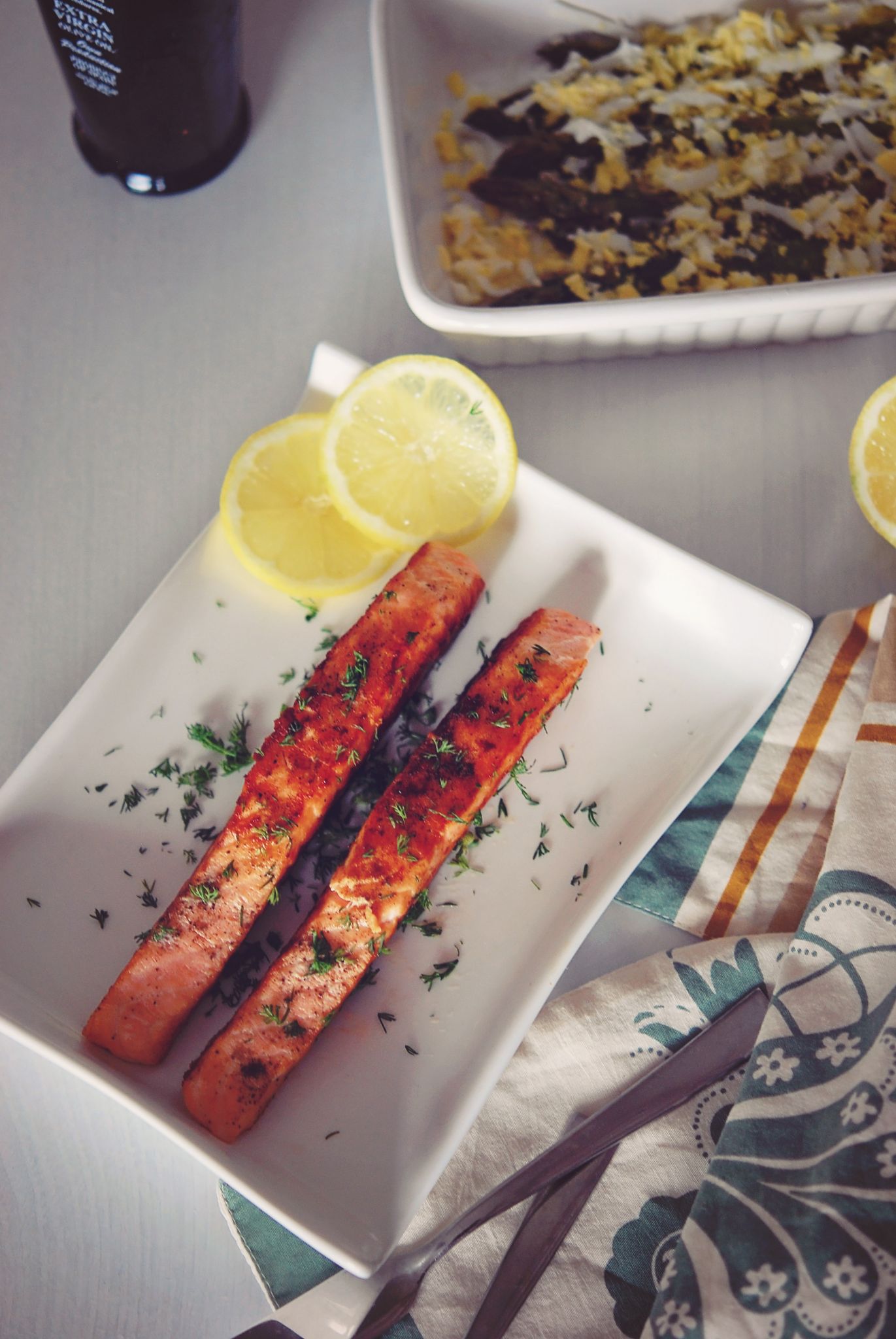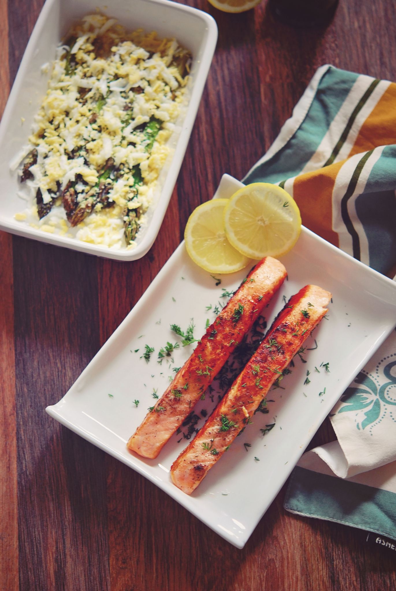 Grilled salmon with oven-roasted asparagus