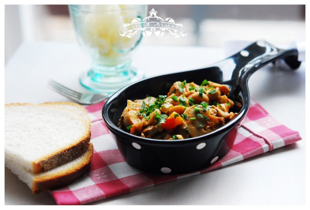 I have adapted this recipe from my mother-in-law. I am nuts about mushrooms, as you can see from so many of my posts:) I added some chicken breast and a white wine sauce that will spin this recipe in a main course, just perfect for cold days. I'll make it in summer too, as it is so delicious.