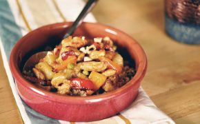 1. In a pot, heat 4 tbsp of oil and fry the diced meat until the water evaporates. After the meat is golden, add 500ml water, knorr and let it boil on medium heat with the lid on for 30 minutes.