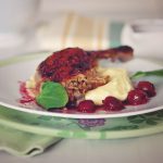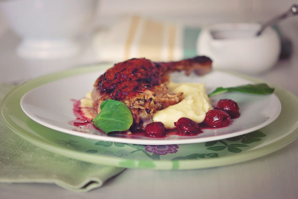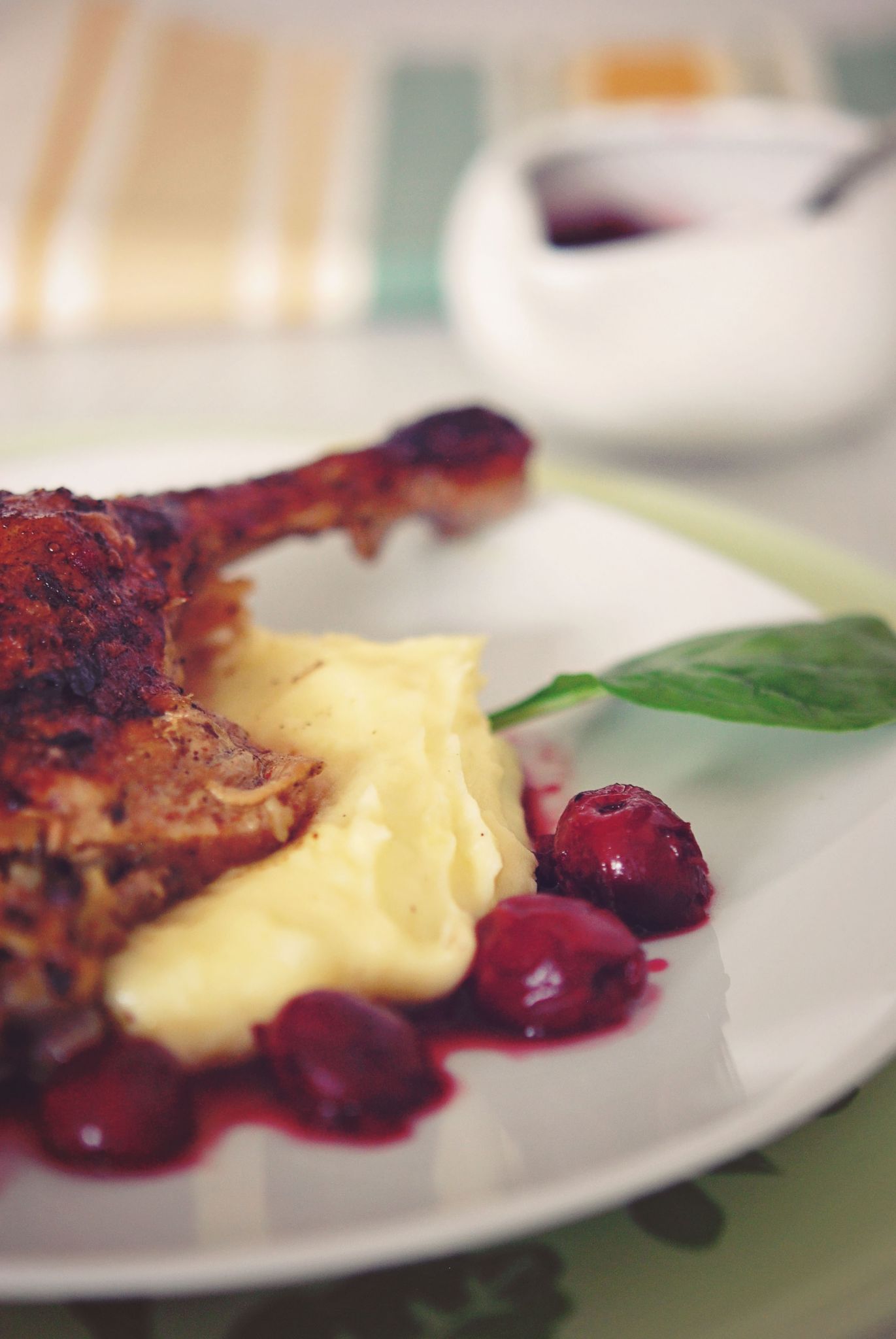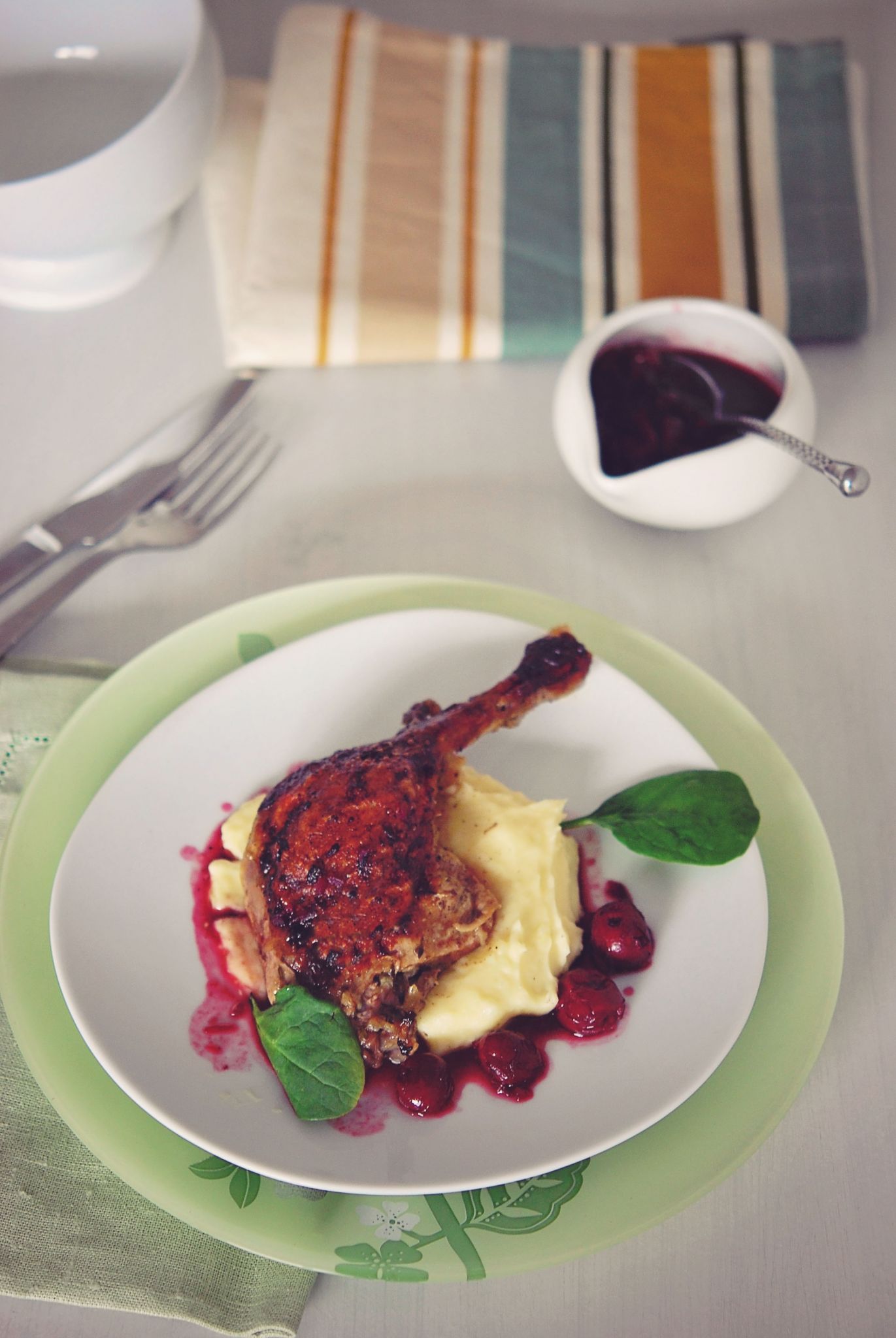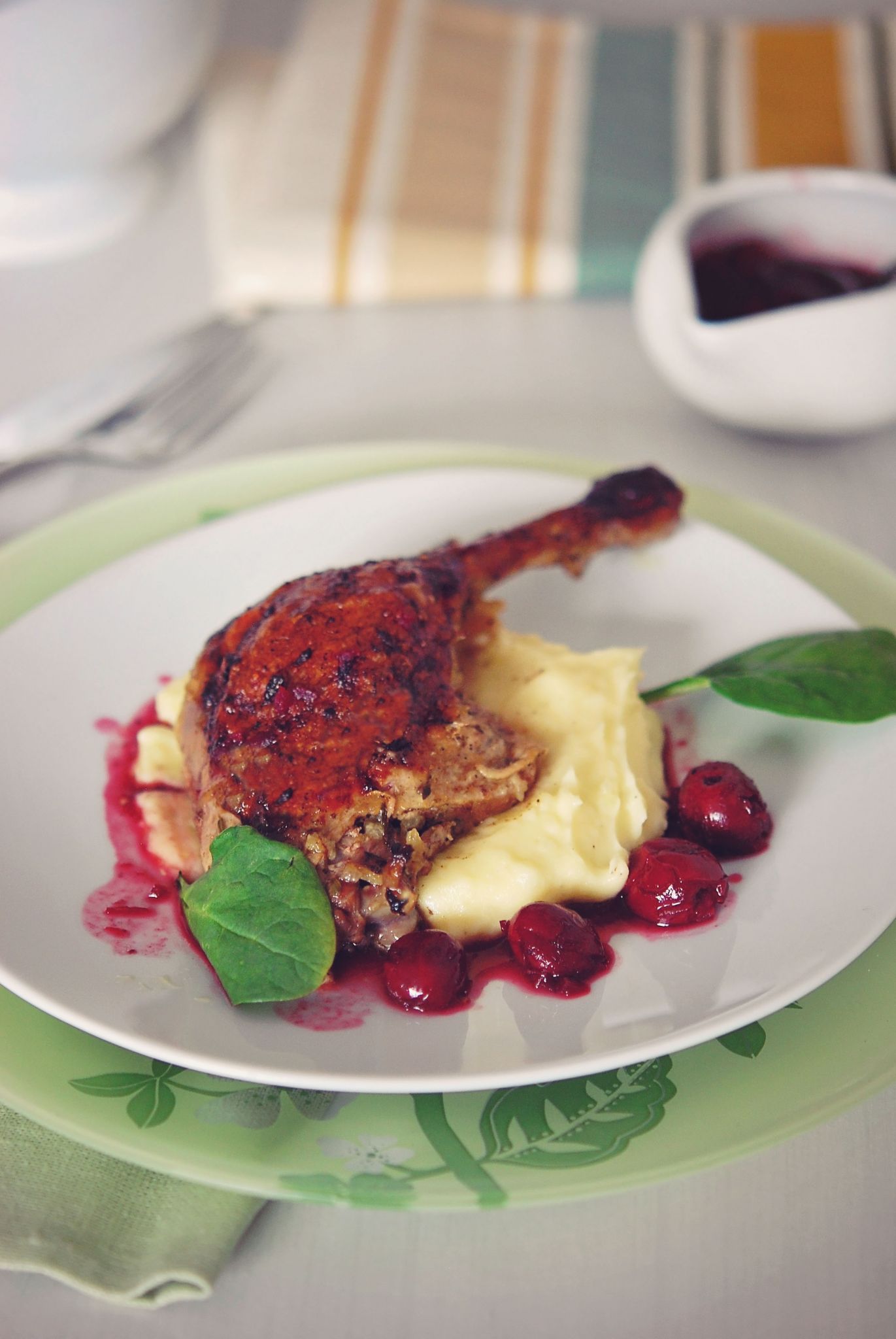 7. Serve everything together. duck leg with pomme puree and cherry sauceduck leg with pomme puree and cherry sauceduck leg with pomme puree and cherry sauce duck leg with pomme puree and cherry sauce
