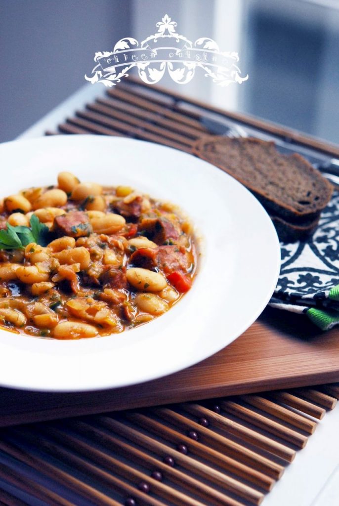 There's been a long time since I've eaten beans stew. I tried to boil the beans for 6 hours and they were still  hard as rocks. Luckily, we received a  pressure cooker as a wedding gift that calmed the beans. I wanted to make my mamma's famous recipe, but couldn't find her online, so I tried the recipe of Bucataras. It is so tasty, served with pickles, roasted peppers or a simple onion.