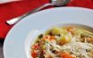 3. Add the wine to the pan, increase the heat to high and boil until there are just 3-4 tablespoons of liquid left. Pour in the stock and boil for about 5 minutes, or until it has reduced and slightly thickened.