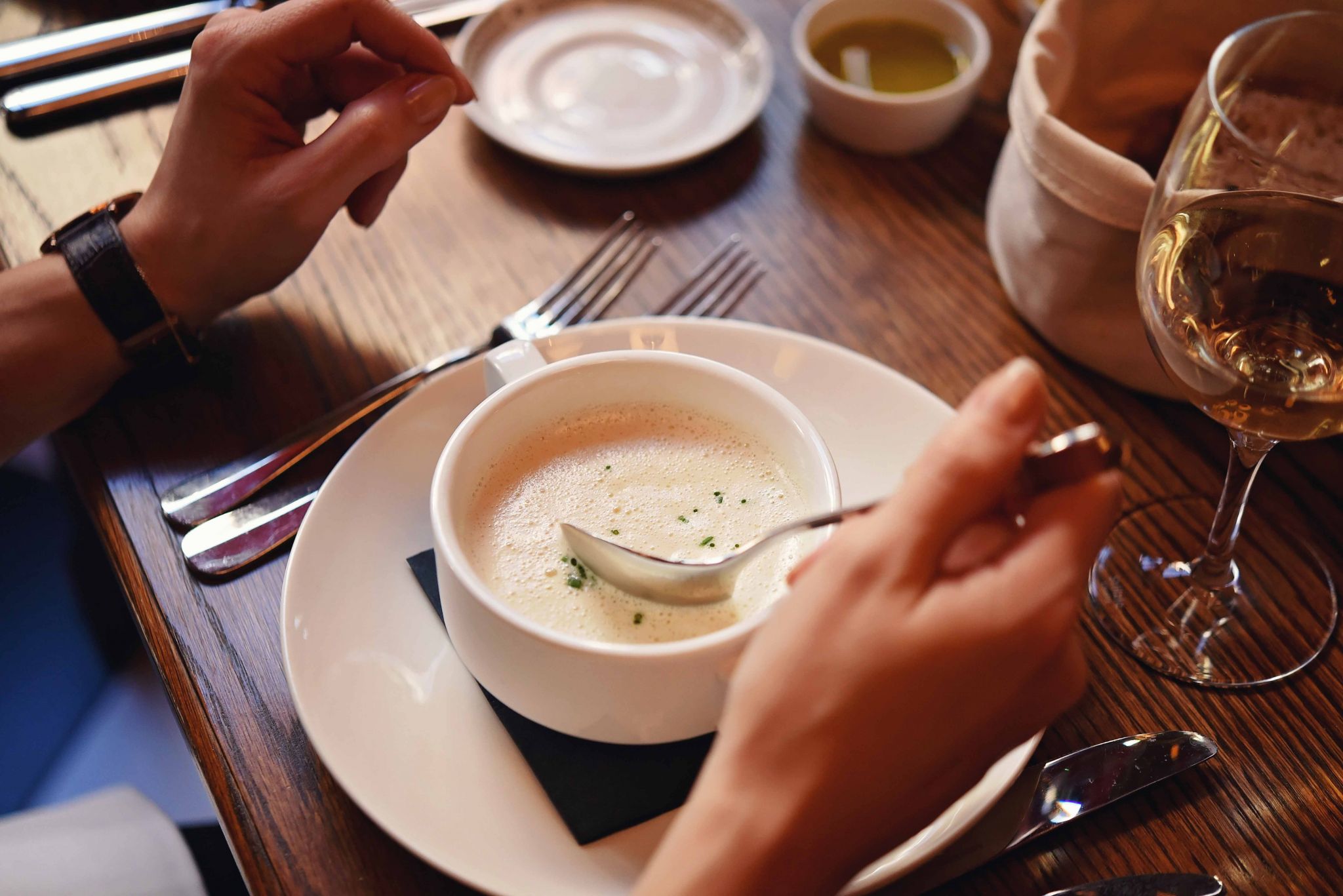 WHITE BEAN VELOUTE SOUP WITH TRUFFLE OIL