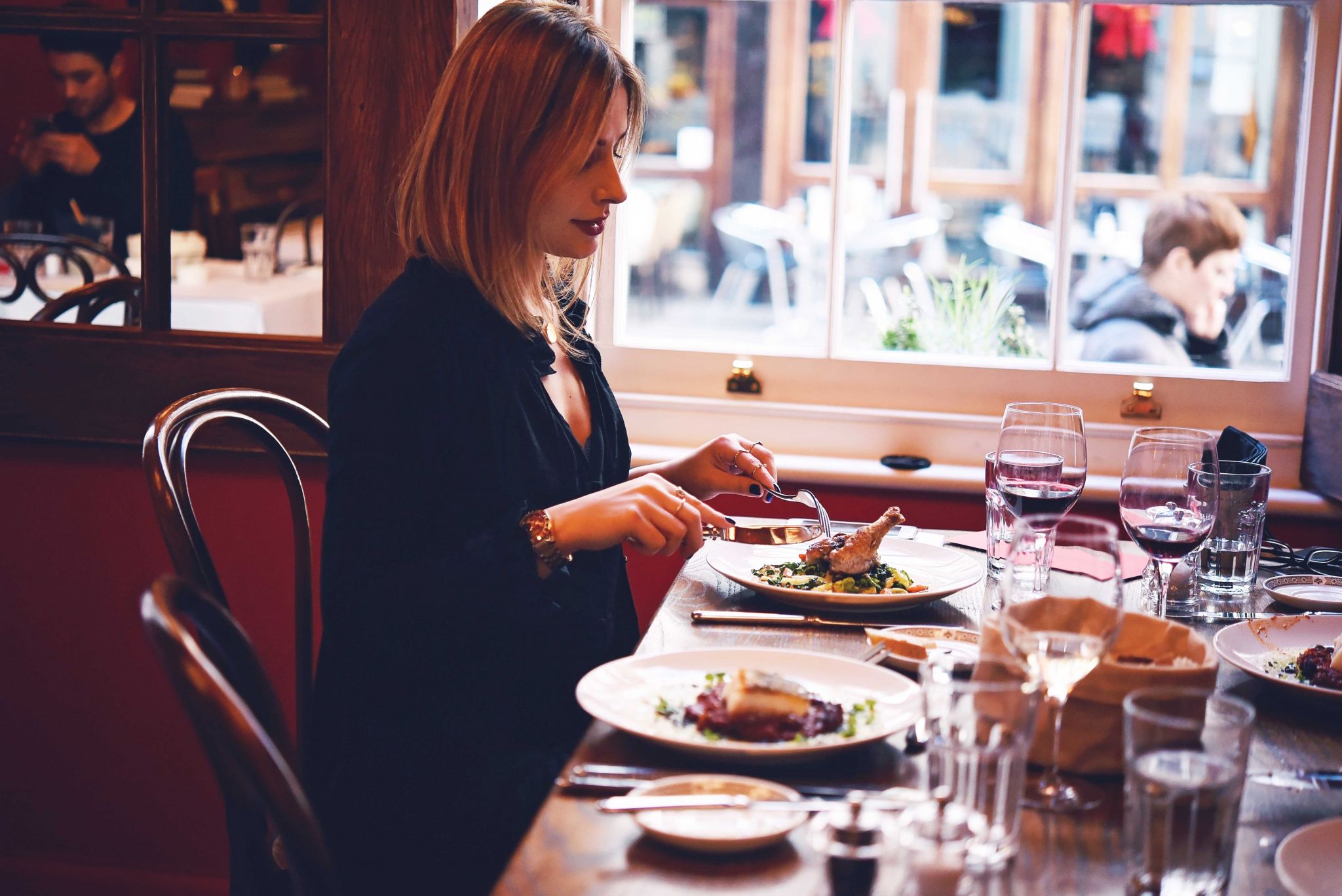 The decor and atmosphere are bohemian and relaxed, with deep red walls and mirrors. The first floor is more classic, with sandy shades and patterned tiles, natural light, extended with a canopied terrace. You can spend hours here before realizing time flies by, especially when you are accompanied by chatty friends, with an appetite for life and food. Opened daily for breakfast, lunch and dinner, Jean Jacques should definitely be on your radar if you want to enjoy an exquisite meal. Staff seemed really engaged with the menu and helped with recommendations, always a plus. What I loved the most about this restaurant was the creative potential I saw: live music, talks, films and readings. We are talking about the most crowded area in London with a high competition, but Soho needed Jean Jacques as fresh air.