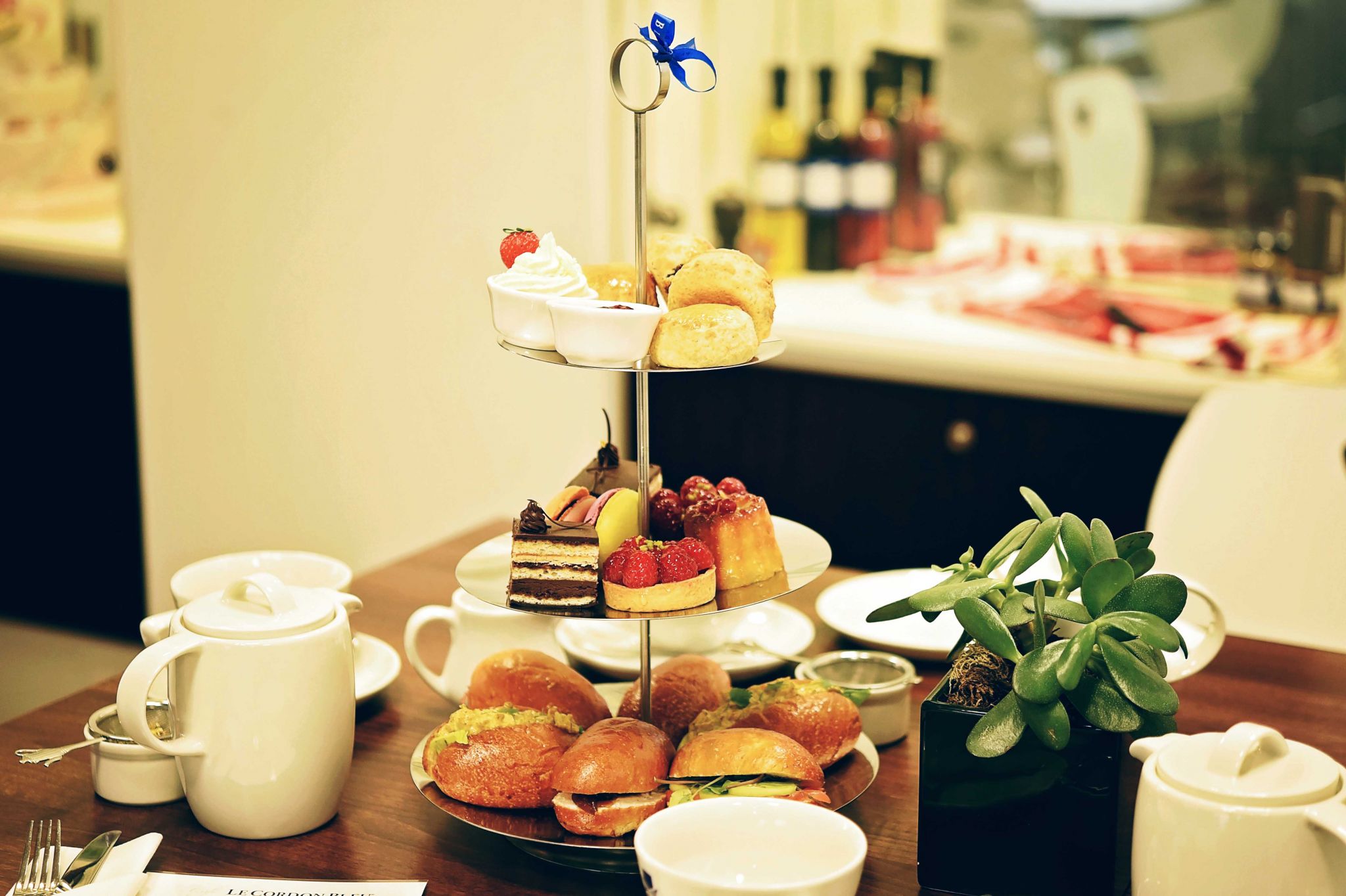 The staff is really well trained, very polite, helpful, prompt and friendly. With a nice selection of teas, we opted for the House Tea, a sublime blend of two great Indian teas – Darjeeling and Assam, from the flood plains of the Bhramaputra Valley. The hot pots kept on coming, without even the slightest suggestion I ran out of water for my leaves. Talk about professionalism and flair! The selection of finger bread rolls, freshly baked in Le Cordon Bleu kitchen, so soft, buttery and crisp on the outside, were filled with coronation chicken; smoked salmon, picked cucumber and creme fraiche; and goat’s cheese and chutney. Delicious fillings, we were really impressed with the coronation chicken, not as sweet and rich as we had it in different restaurants, it was perfect.