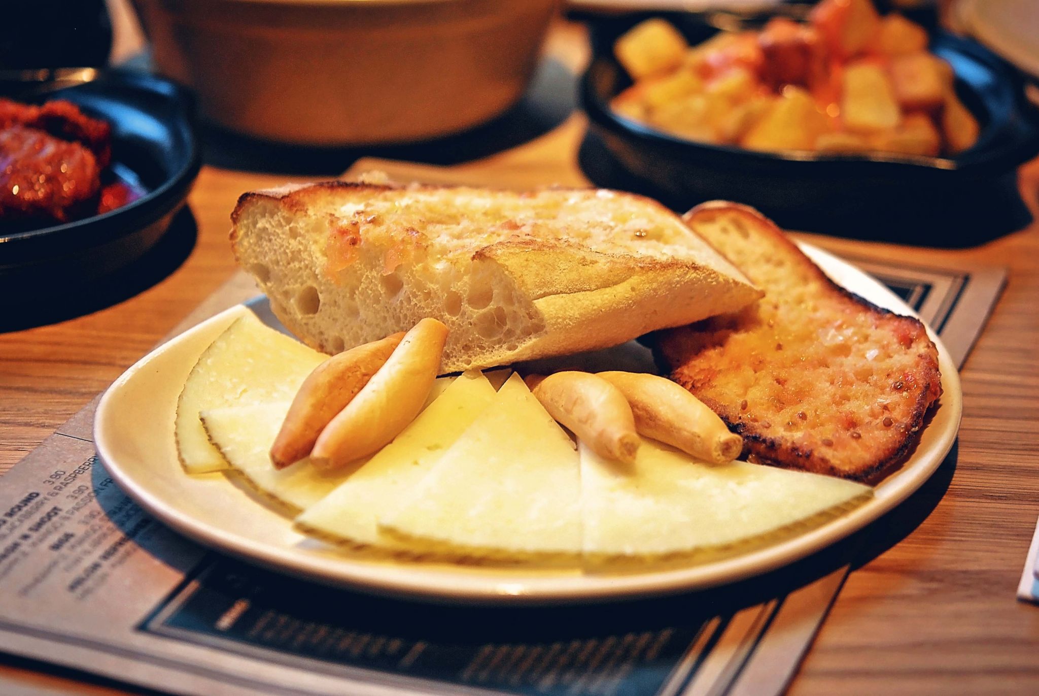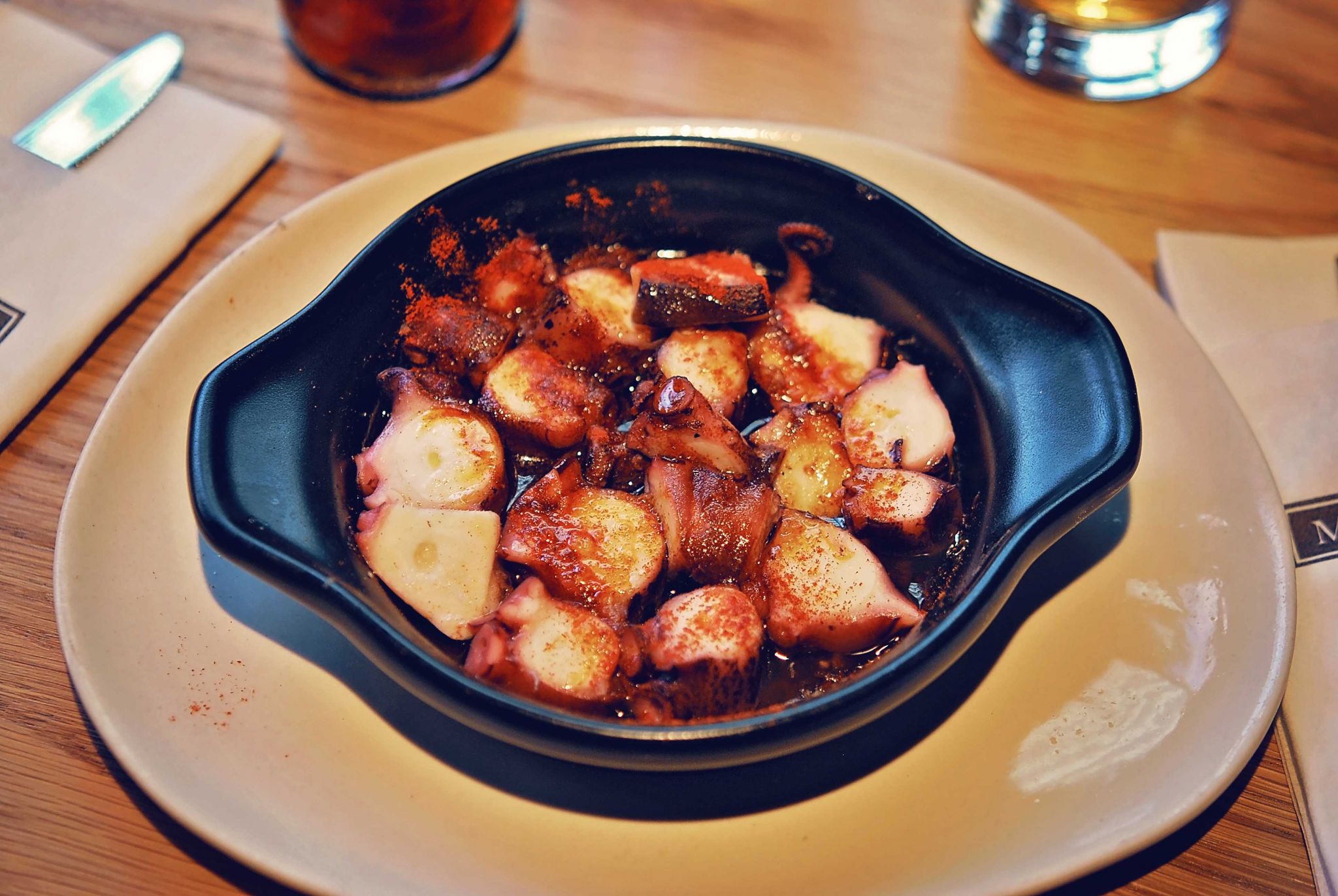We’ve started with a selection of tapas. The Galician style octopus was fabulously cooked, as we could still feel the sea in our mouth, taking us back to a warm sunny beach with no care in the world. The Spanish meatballs were surprisingly light, flavorful and delicious, while the velvety tomato sauce paired them to perfection. The famous patatas bravas were really crisp, complimenting the dishes as they supposed to. We continued our lunch with an asparagus, seasonal tomatoes and jamón bellota salad and the famous cocas with bresaola, rocket, seasonal tomatoes,  Parmesan cheese, pine nuts and vinaigrette. Famed for its flagship product of jamón ibérico de bellota, an icon of Spanish gastronomy, this is the show stopper at Mas Q Menos. The acorn-fed, superior Iberian jamón is a real must for gourmands. It is accompanied by the classic bread dressed with tomato, or a coca flatbread made especially for Mas Q Menos using olive oil. We were really impressed with the freshness of the salad and the high quality of the ham. I am a Bresaola fan, and I must say, this was one of the best I’ve had, and trust me, I try it every time I have the opportunity. Make sure to order some, it is a must for every foodie. At the end, we’ve had the famous Manchego cheese, which we absolutely adored. It was my first and I will remember it forever.