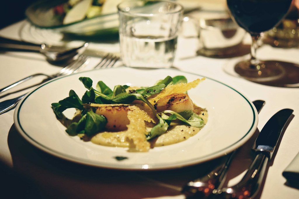 Now, let’s move on to the most important part: the food. For starters we chose Seared scallops with truffle creamed potato, lambs lettuce, Parmensan crisp and shaved truffle; and Spinach, avocado and bacon salad with sourdough croutons and Parmesan dressing. Both dishes were refreshing, beautifully plated and, while pretentious, they still had a homey feel to it, surprisingly. In a place like The Ivy you have to expect an explosion of tastes and a fusion of cuisines, like it was unfolded throughout the evening. The scallops were the best I’ve ever had, and as a seafood lover, I know this is one of the most difficult dishes to get right. The Chef has done a perfect job composing this course, with the dressing complimenting the scallops beautifully.