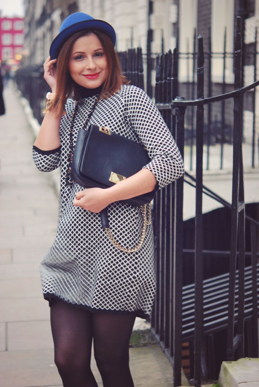 My aunt is really into hats. She has an impressive collection, gathered over the years, classic, chic, haute couture or sporty hats, name it, she has it. I am the proud owner of only four hats, bought or received. My head is some sort too small for the hats I have found in shops, so whenever I find a fitted one, I will buy it, which is really rare. When I saw the blue hat from New Look, on sale by the way, I knew it will look really nice with my patterned black&white dress. I just had to find some courage to wear them together, because I don’t do hats. I should wear them more often now. Be bold, it might do you some good!