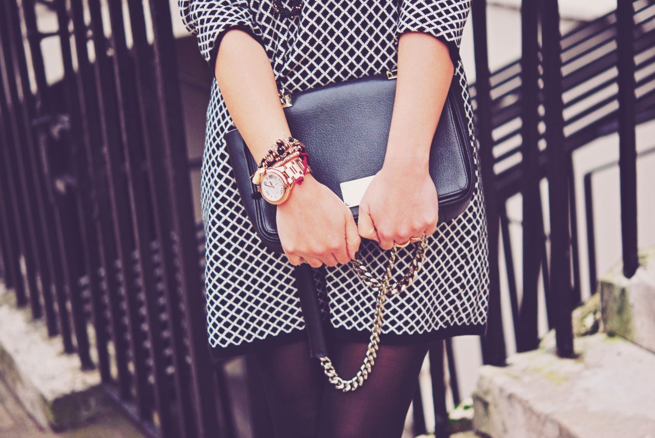 Zara dress/Edeline Catinas bag/Topshop brogues and rings/Michael Kors watch/Accesorize bracelets and necklace/New Look hat