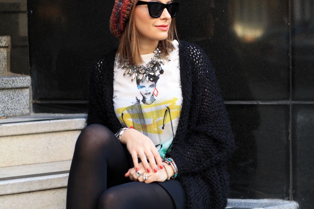 I love myself a colorful bennie, as the temperature decreases. It looks so chic and fun, yet really useful, don’t you agree? You can wear it up or down, just the way it pleases you, don’t forget though to smarten your outfit with comfortable brogues and a fluffy cardigan!