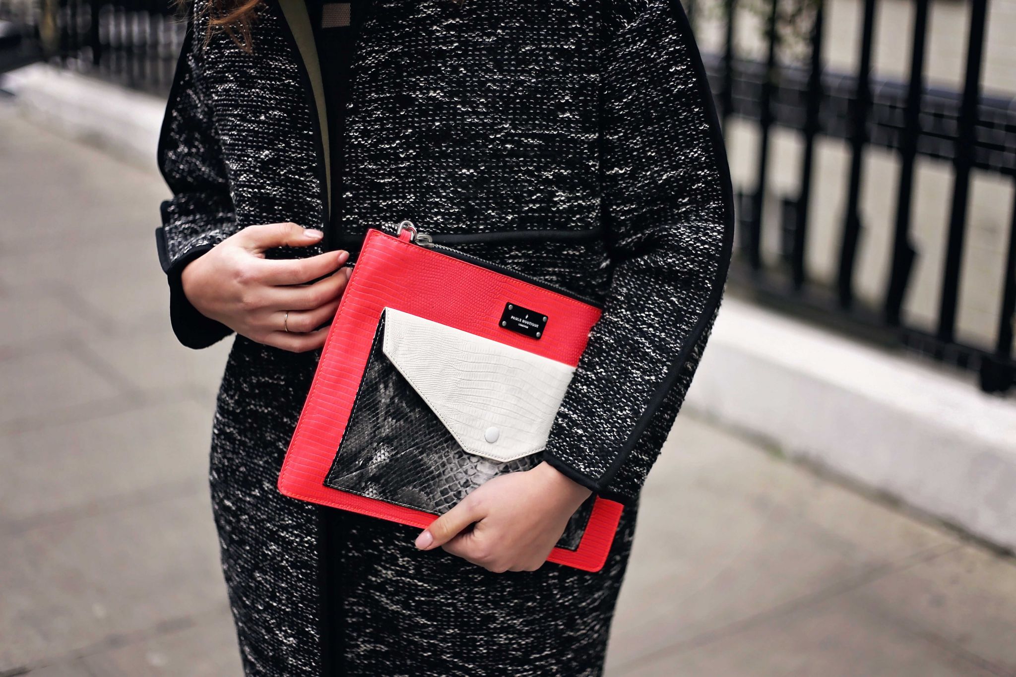 These days are so unpredictable. The weather is fine now, and the next hour your coat is a must. I have been wearing lots of grays and blacks recently, so I thought about breaking the rules with a bright clutch, that might bring the sun back. When featuring a simple, casual, and masculine look, like the one in this street style post, keeping your accessories to a minimum is mandatory. This is why I absolutely adore this neon pink clutch from Paul’s Boutique. Simple, but effective. Now, let’s pray the sun will love us more!