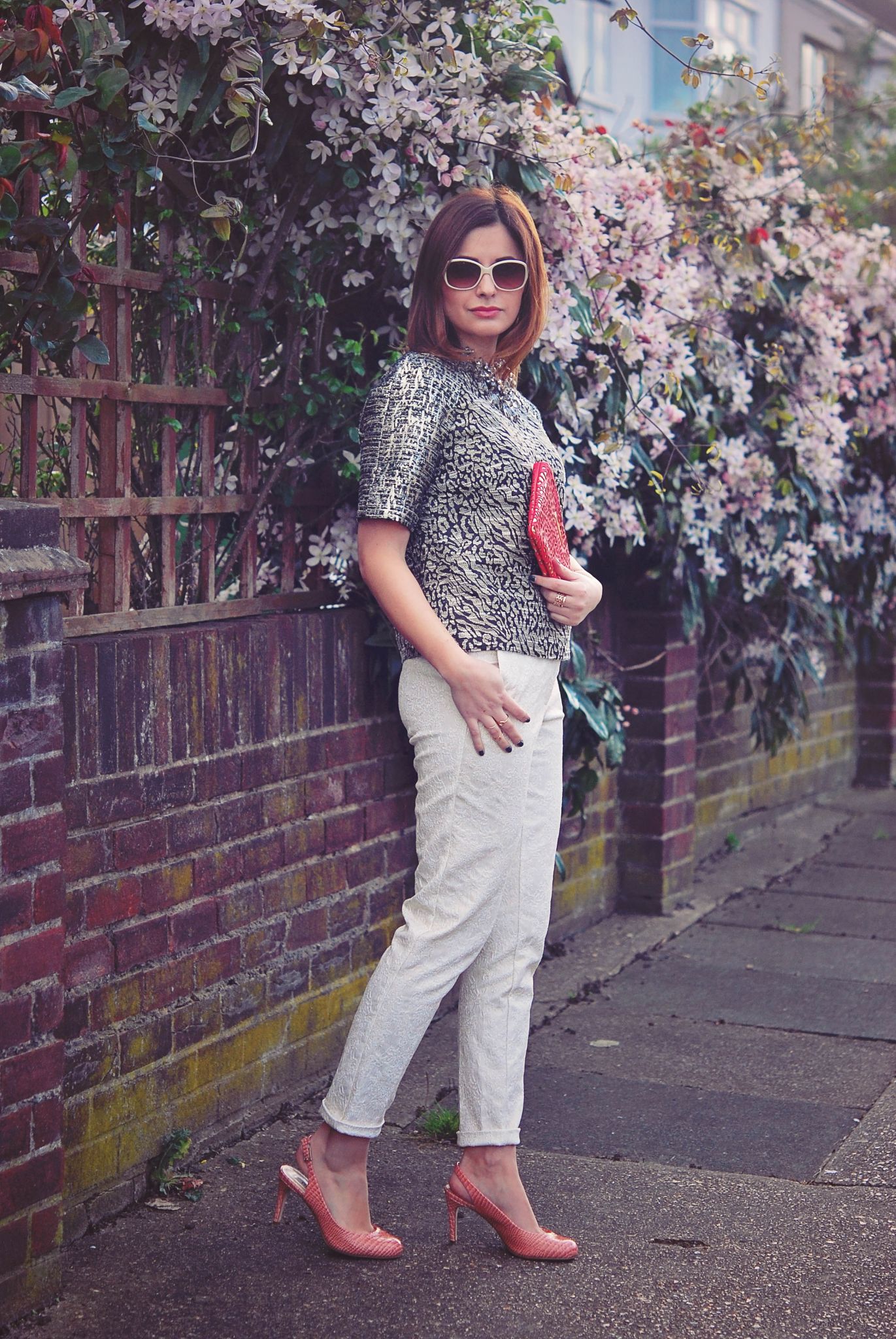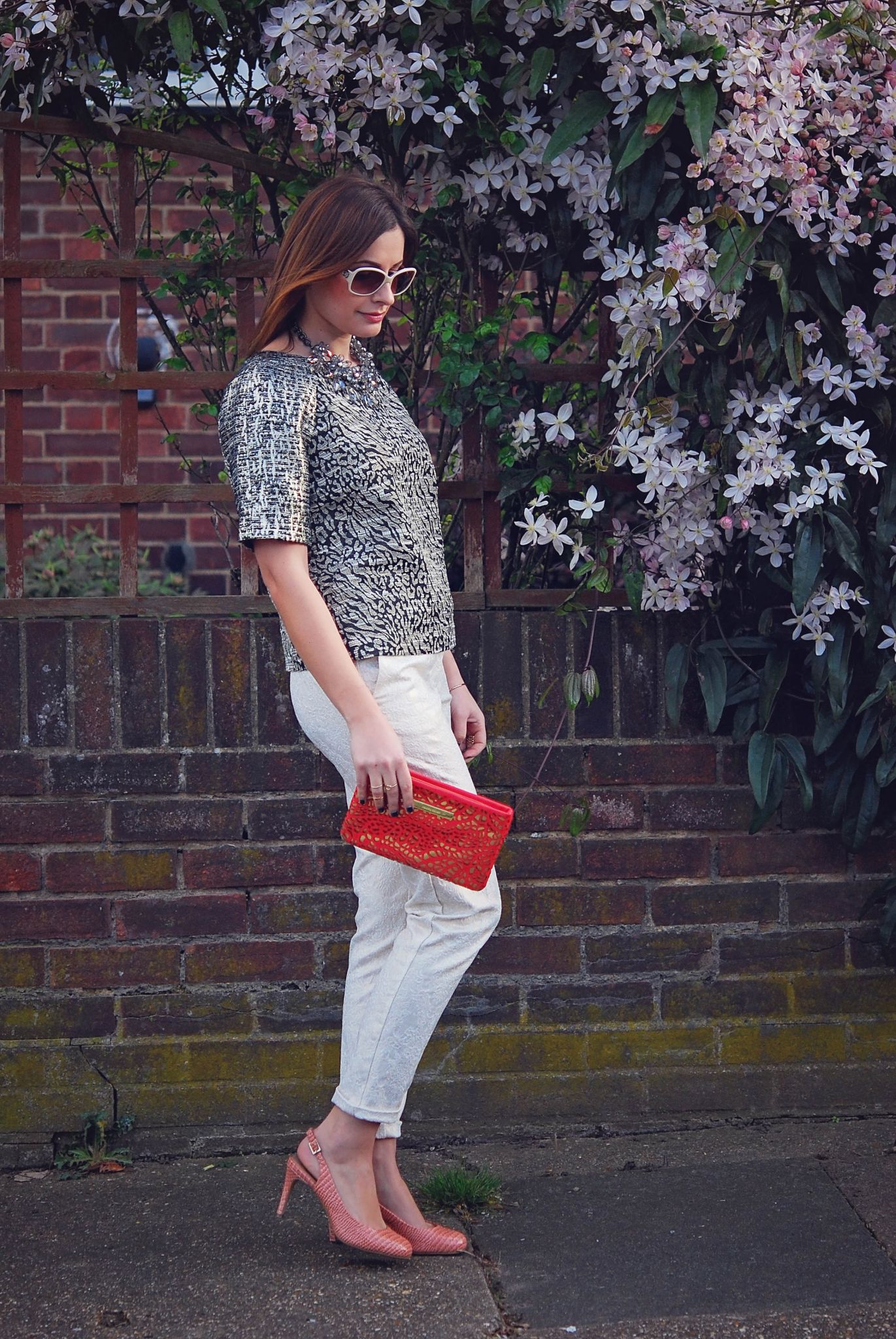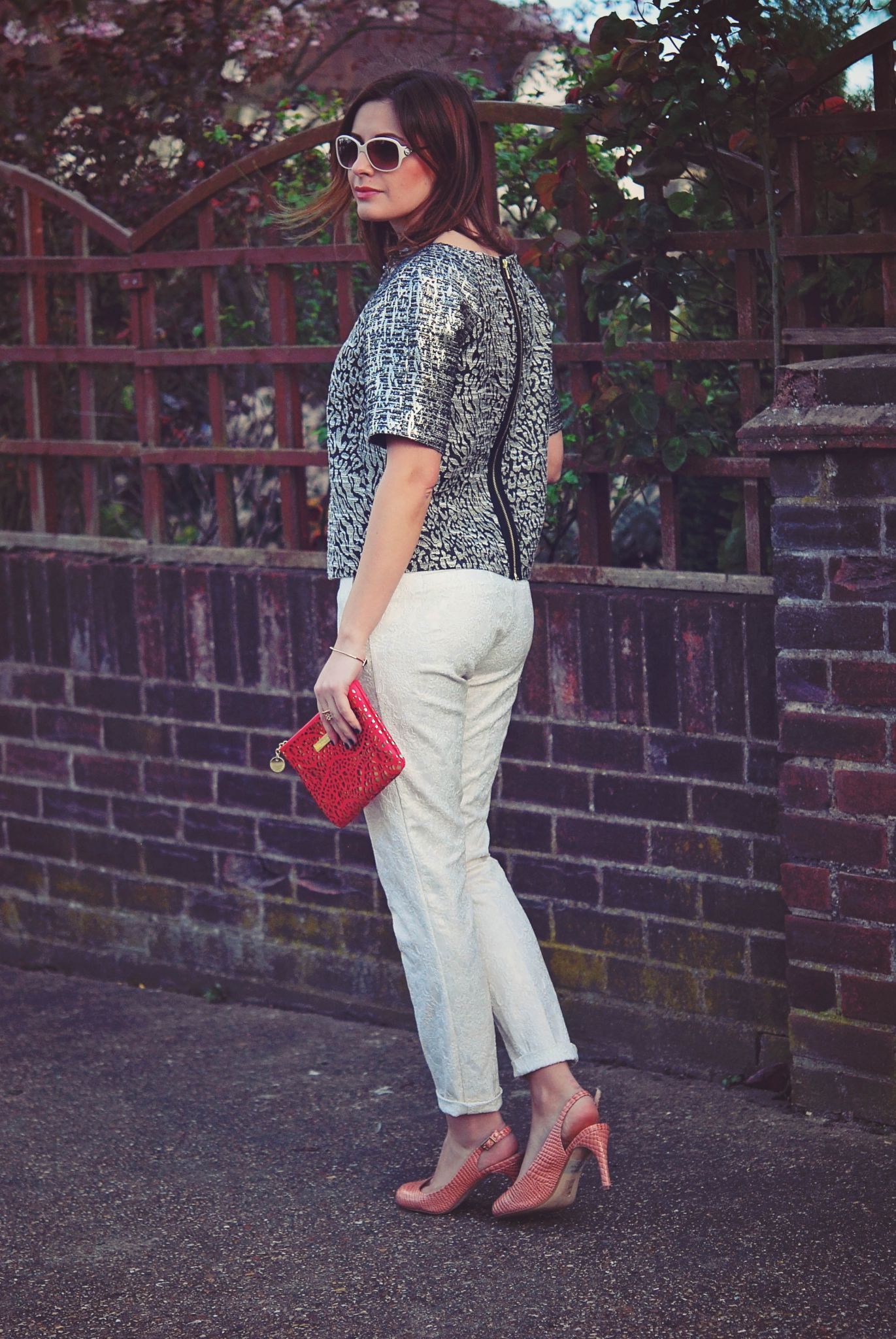 How I love a beautiful quiet afternoon, surrounded by an amazing scenery in my neighborhood. Metallic prints are such a hype this season and I am embracing this trend with tremendous love. It is edgy and feminine at the same time, the perfect combination. For a chil afternoon, pair a statement metallic top with relaxed white trousers, kitty heels and a pastel clutch. Happy Sunday!DSC_0027DSC_0033 DSC_0051 DSC_0045 DSC_0056DSC_0042 DSC_0043Ivanka Trump clutch/Topshop blouse and rings/River Island pants/Dune heels/Zara necklace/Dorothy Perkins bracelet/Pierre Cardin sunglasses