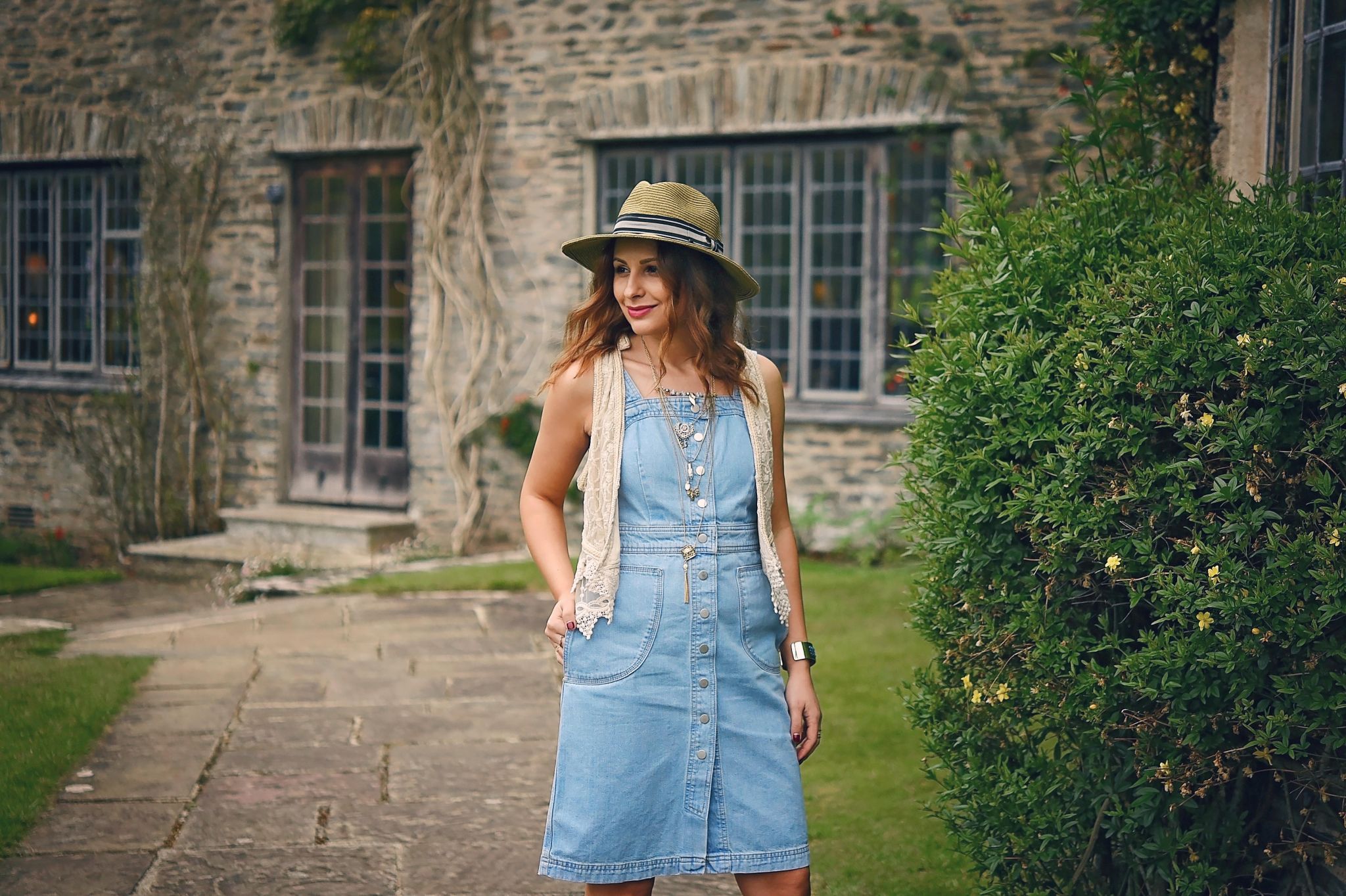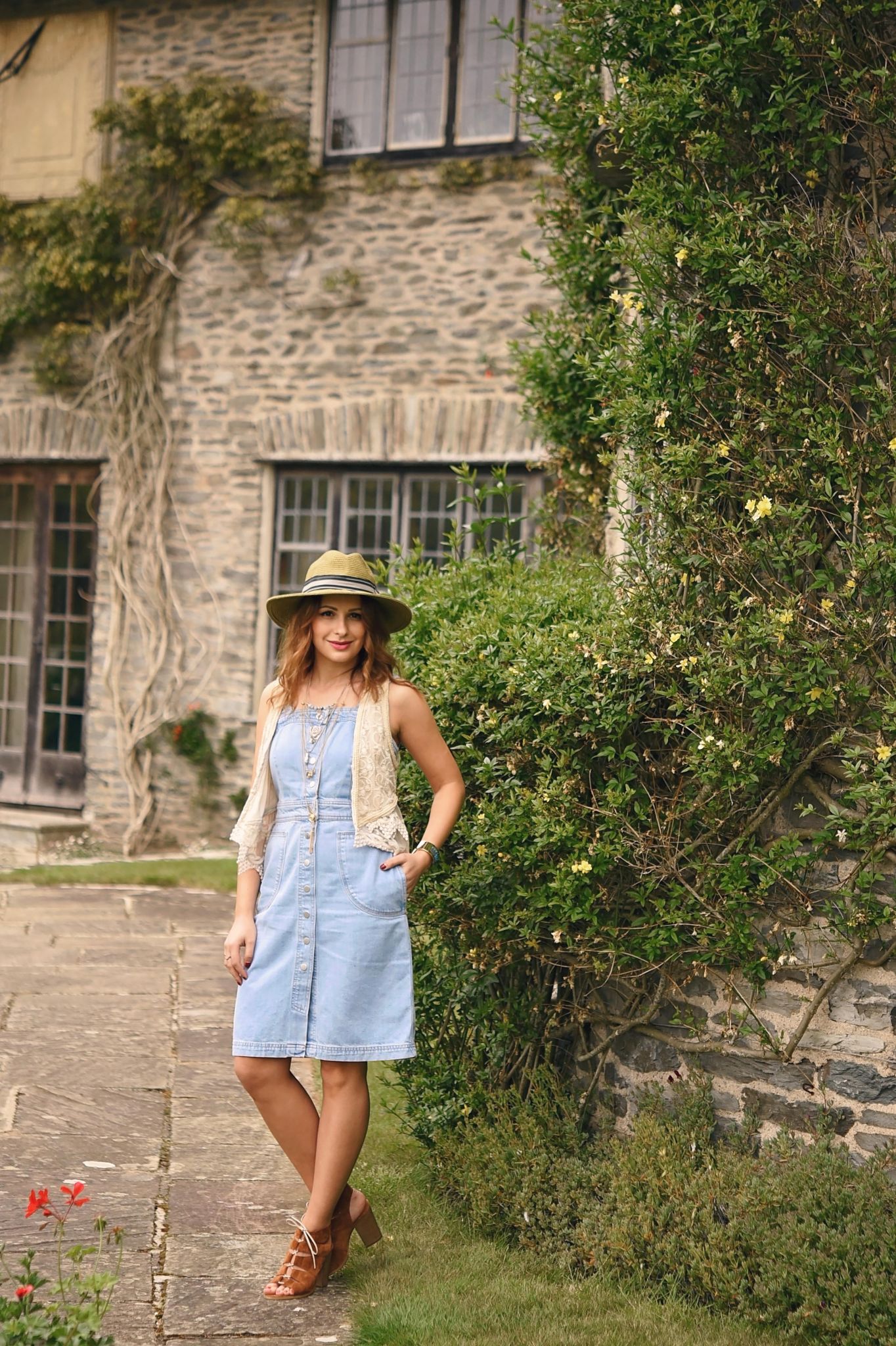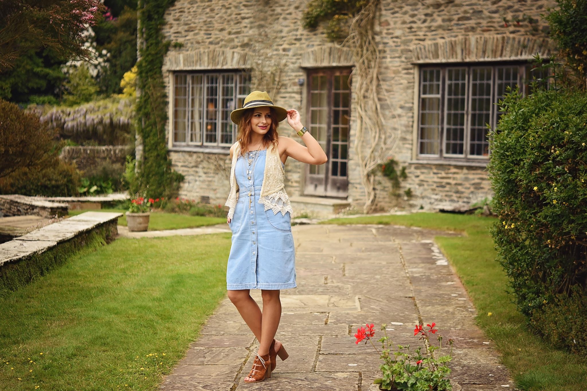 The countryside denimThere is an indescribable feeling I have whenever I am in nature. I know, such a cliche and over-wrote about subject. But this place I have visited last month left me speechless. Beautiful garden, with amazing bright pink trees, majestic alleys, and a vintage, incredibly stunning house. I will write a post with lots of pictures taken at Coleton Fishacre, Devon, and you will understand better what I mean. So, how do you dress when you visit the countryside? A true fashionista will definitely know that a pair of shorts, sneakers and a plain t-shirt won’t do. We must learn from the best, so I raved my Pinterest account one day and decided denim is the way to go. This pinafore denim dress from Topshop is ticking all the boxes: trendy, comfy, and nature appropriate. Since it made an excellent comeback the last couple of seasons, denim is a strong presence in every catwalk, therefore, you should invest in a piece to have and to hold.