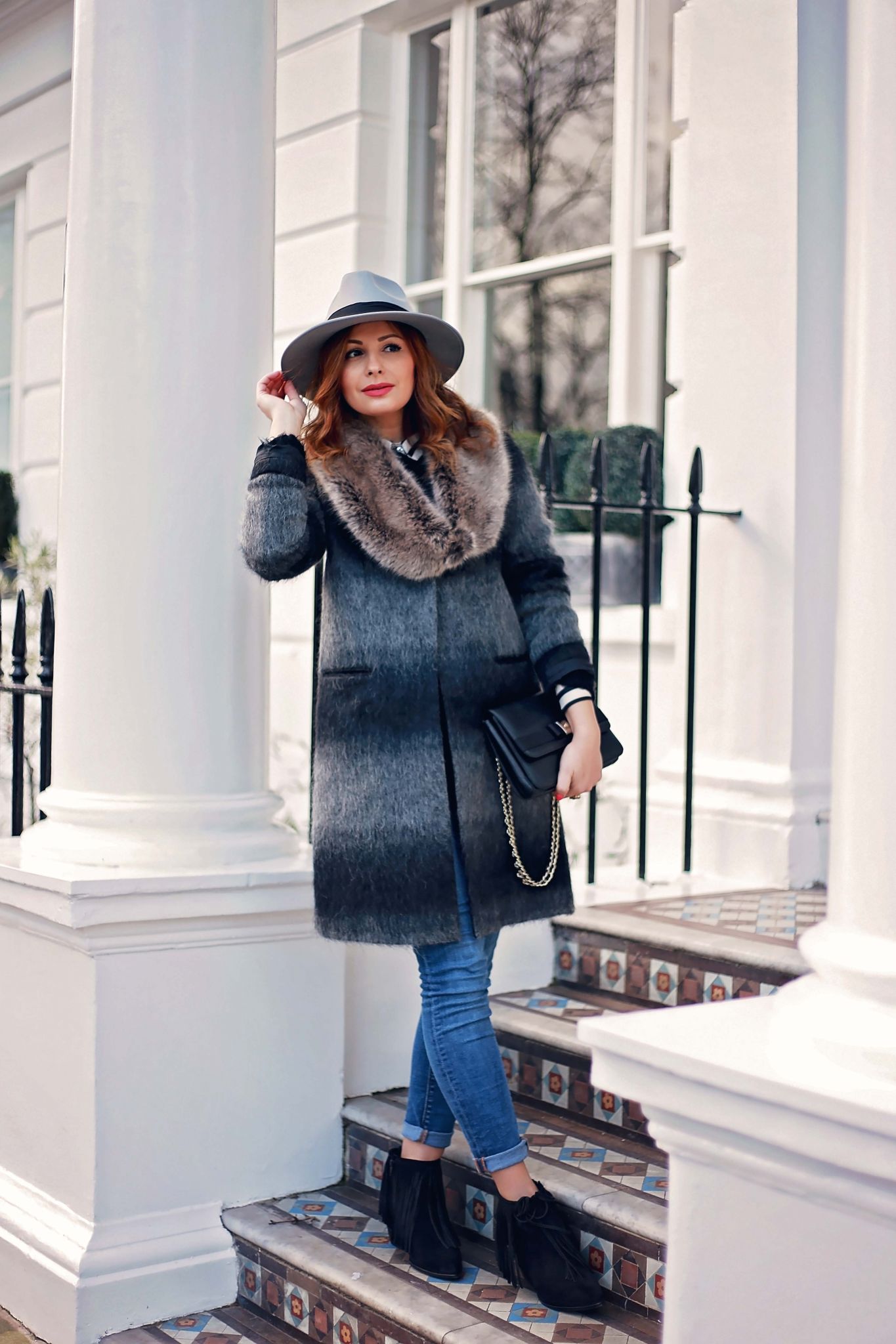 Wearing Clements Ribeiro coat (on sale here)/River Island jeans/Accessorize collar (similar here)/Arezzo boots/Missguided hat (buy here)/Russell and Bromley bag (buy here)how to wear a fur collar how to wear a fur collar how to wear a fur collar how to wear a fur collar how to wear a fur collar