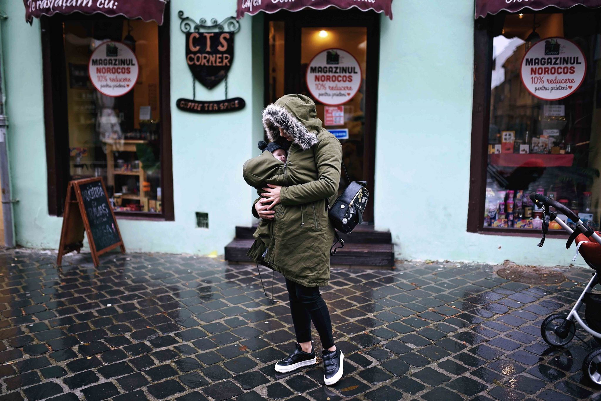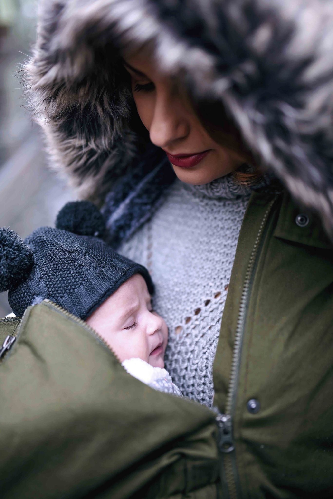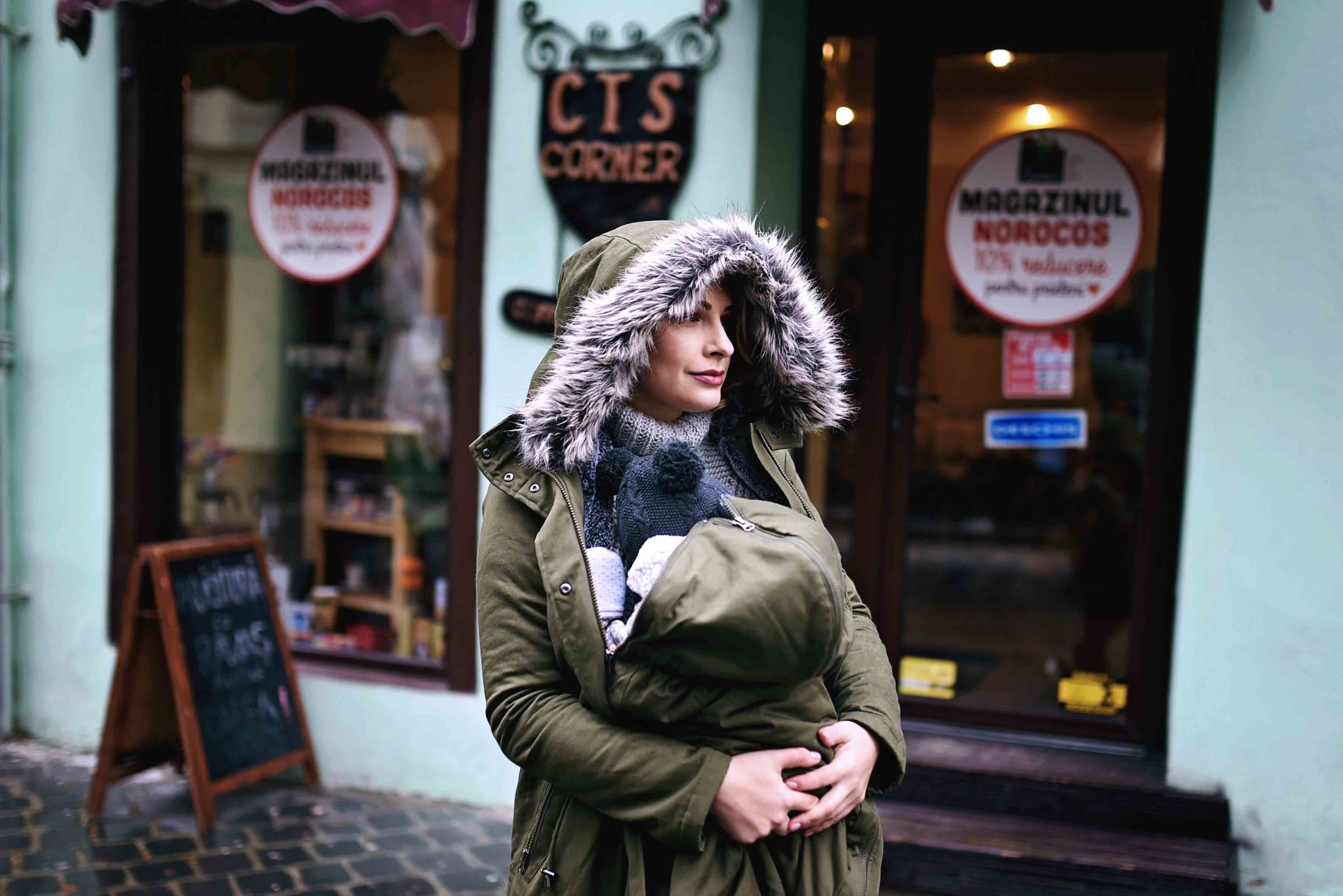 Never out of fashion and always in style, parkas have received a huge makeover, but this season’s catwalks always come back to faux fur trims and linings, in all shades of khaki, becoming the cool-weather essential. The ultimate cold weather babywearing coat, the Seraphine 3 in 1 parka is designed for bump, baby and forever, keeping you and your little one cosy. Emma really loved it, she slept through our walk in the cold Brasov (mountain town in Romania). The zip-off kangaroo panel is easily fitted at the front to fit over your baby sling or front carrier. It can be zipped all the way up when it’s windy, or worn open as a little hood. dsc_2442 dsc_2431